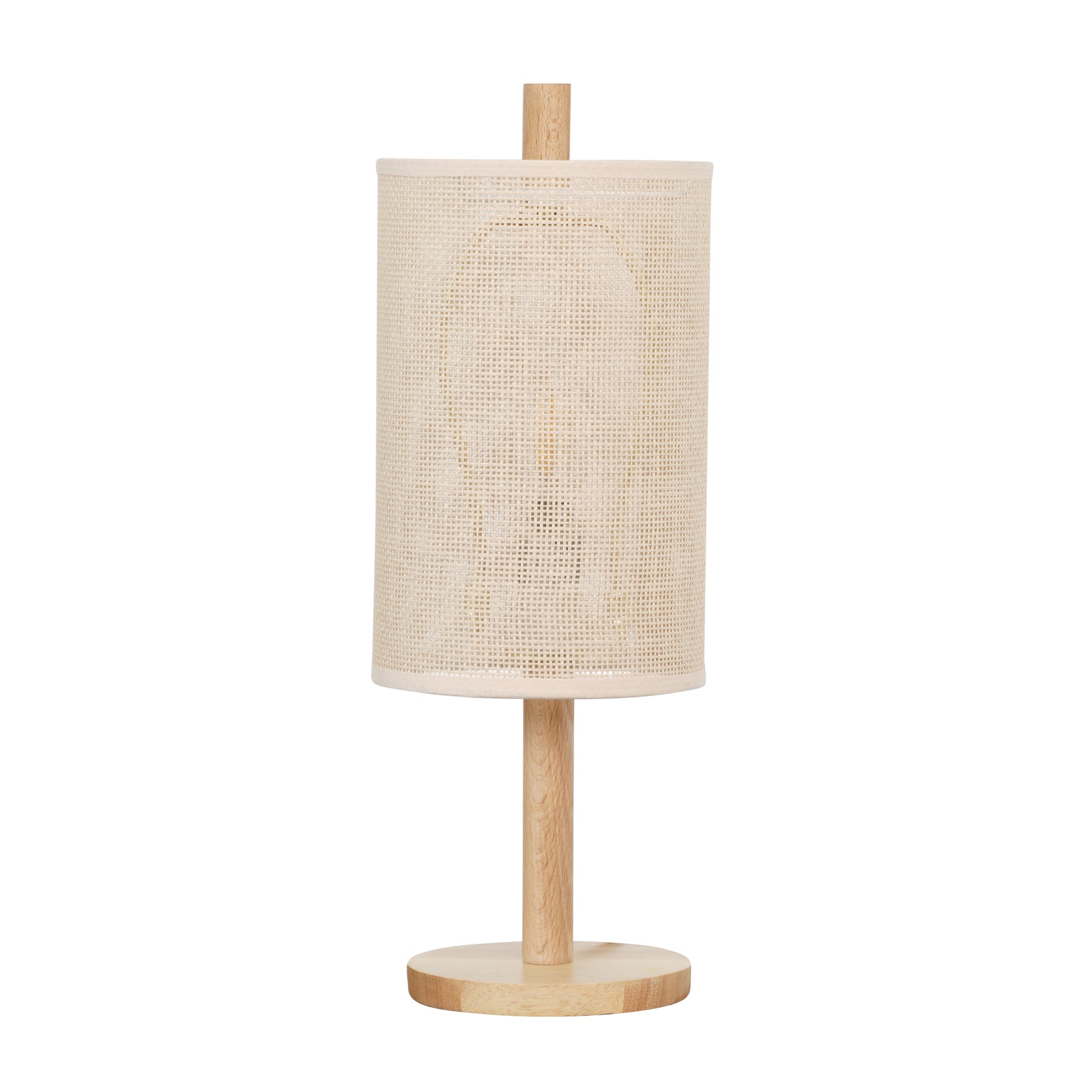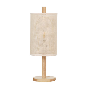 Bring a touch of nature into your home with this elegant wooden table lamp. The minimalist design features a natural wood base paired with a cylindrical woven fabric shade, creating a warm and inviting ambiance. Perfect for side tables, nightstands, or desks, this lamp effortlessly blends into bohemian, rustic, or modern decor styles. Enhance your living spaces with this timeless lighting piece.