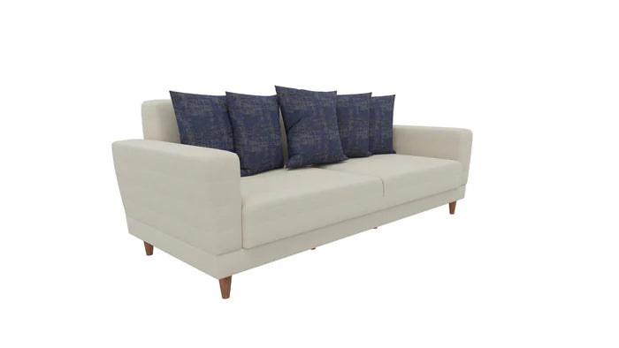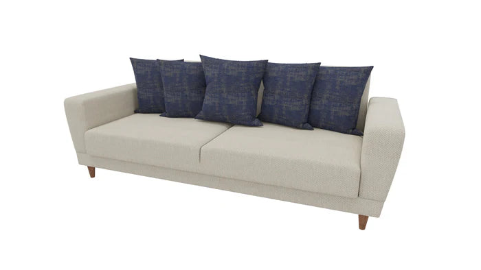 Upholstered in a soft, durable light beige fabric, the Dolce creates an inviting atmosphere while providing a neutral backdrop for your decor. The included set of five navy blue pillows adds a touch of nautical elegance and allows for easy style customization.