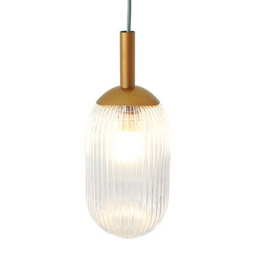 Bronze Pendant Light with Ribbed Glass Shade Elevate your interior decor with this Bronze Pendant Light featuring a beautifully crafted ribbed glass shade. Its elegant gold finish and timeless design make it an ideal addition to any space, whether it's a kitchen, dining room, or living area. This pendant light offers warm and diffused illumination, adding both function and sophistication to your home.