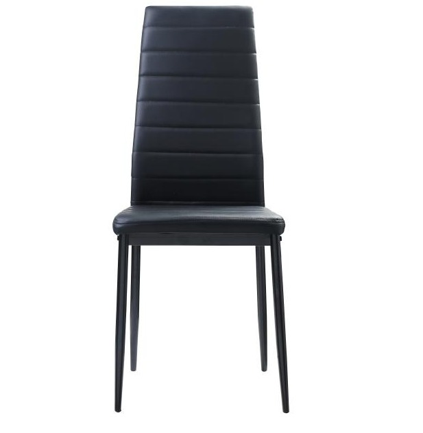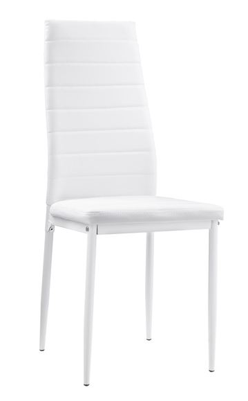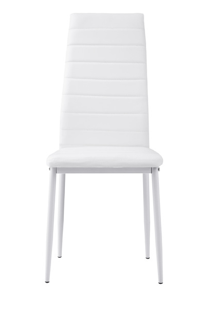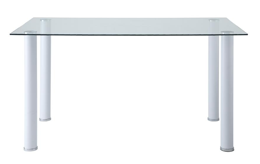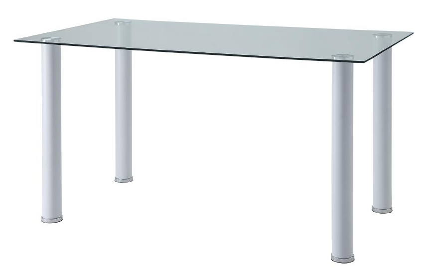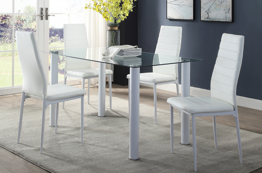 Ultra modern styling is exemplified with the design of the Florian Collection. White metal legs with clear glass top – for the perfect fit in your casual dining space. Faux leather covered seats in coordinating black or white complete the contemporary look.