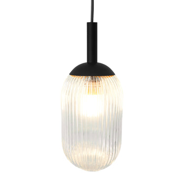 Black Modern Pendant Light with Ribbed Glass Shade Add a sleek and modern touch to your home with this Black Modern Pendant Light featuring a ribbed glass shade. The bold black finish paired with the textured glass creates a striking visual contrast, making it a versatile piece for kitchens, dining rooms, or living spaces. This pendant light combines style and functionality, offering soft and ambient illumination to enhance your decor.