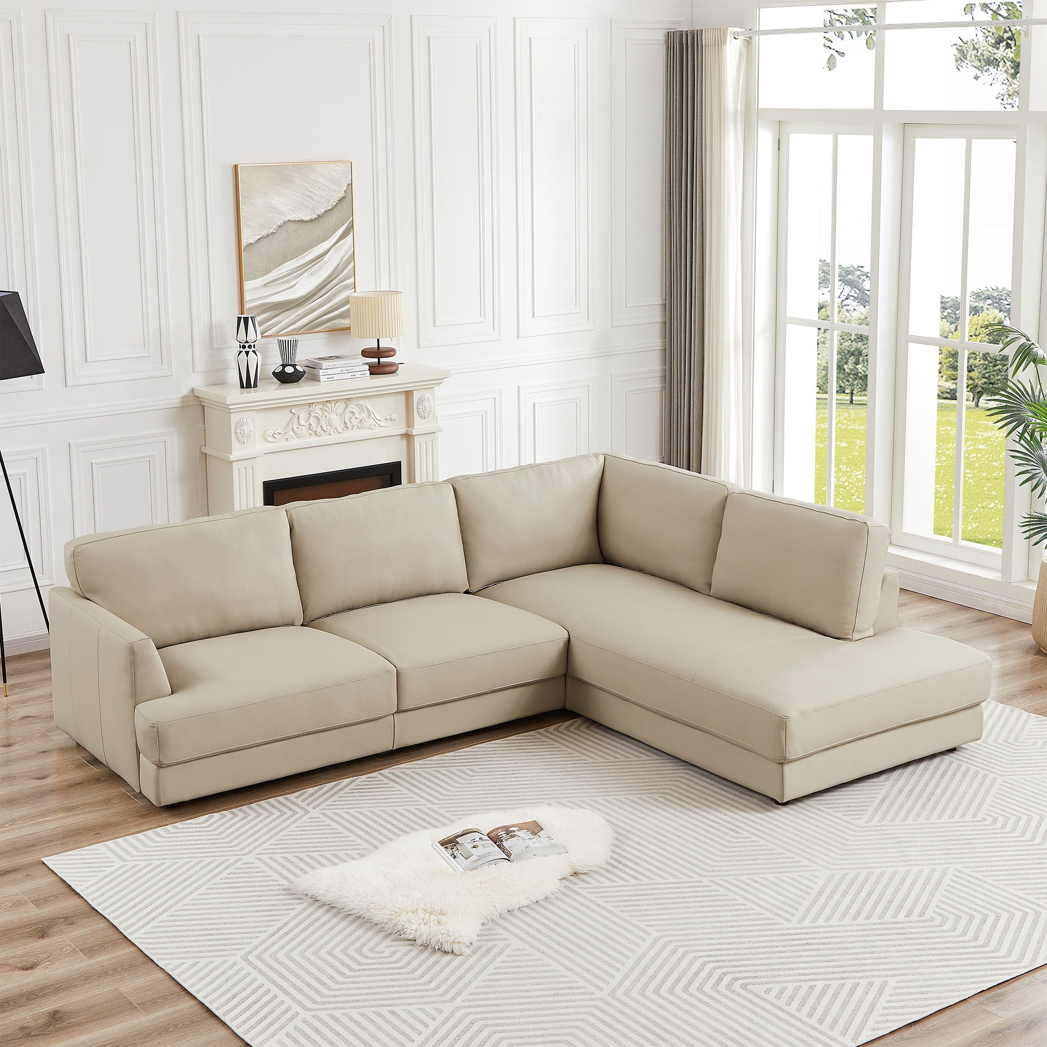 Glander Cream Leather Sectional Sofa Right Facing