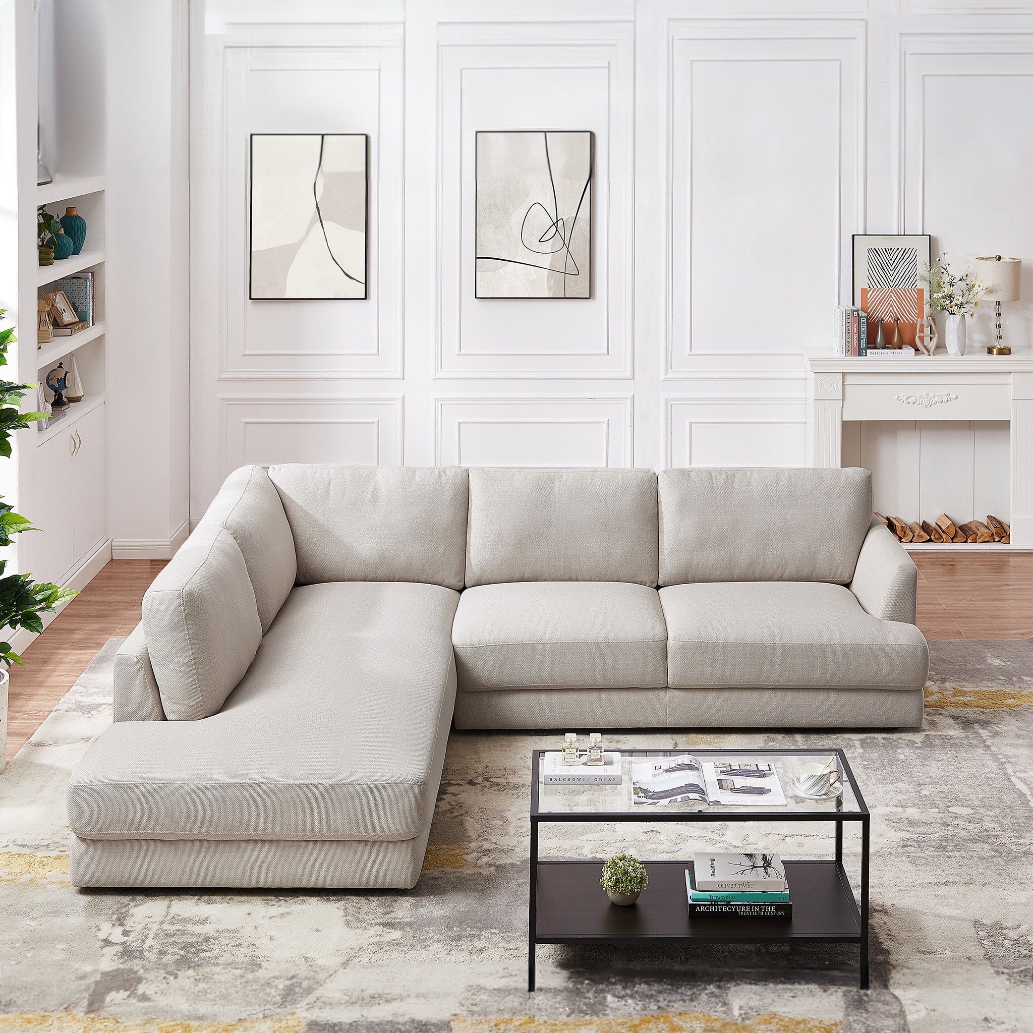 The pillow back linen sectional offers a perfect blend of comfort and style, making it an inviting centerpiece for any living space. Crafted with quality upholstery, this sectional boasts a soft and luxurious texture that exudes an understated elegance. The distinguishing feature of the pillow back design is its plush and generously filled backrest cushions, providing exceptional support and a relaxed seating experience. Whether you're lounging with a book, enjoying movie nights, or hosting gatherings, this sectional's deep seating and ample room allow for versatile and cozy arrangements.