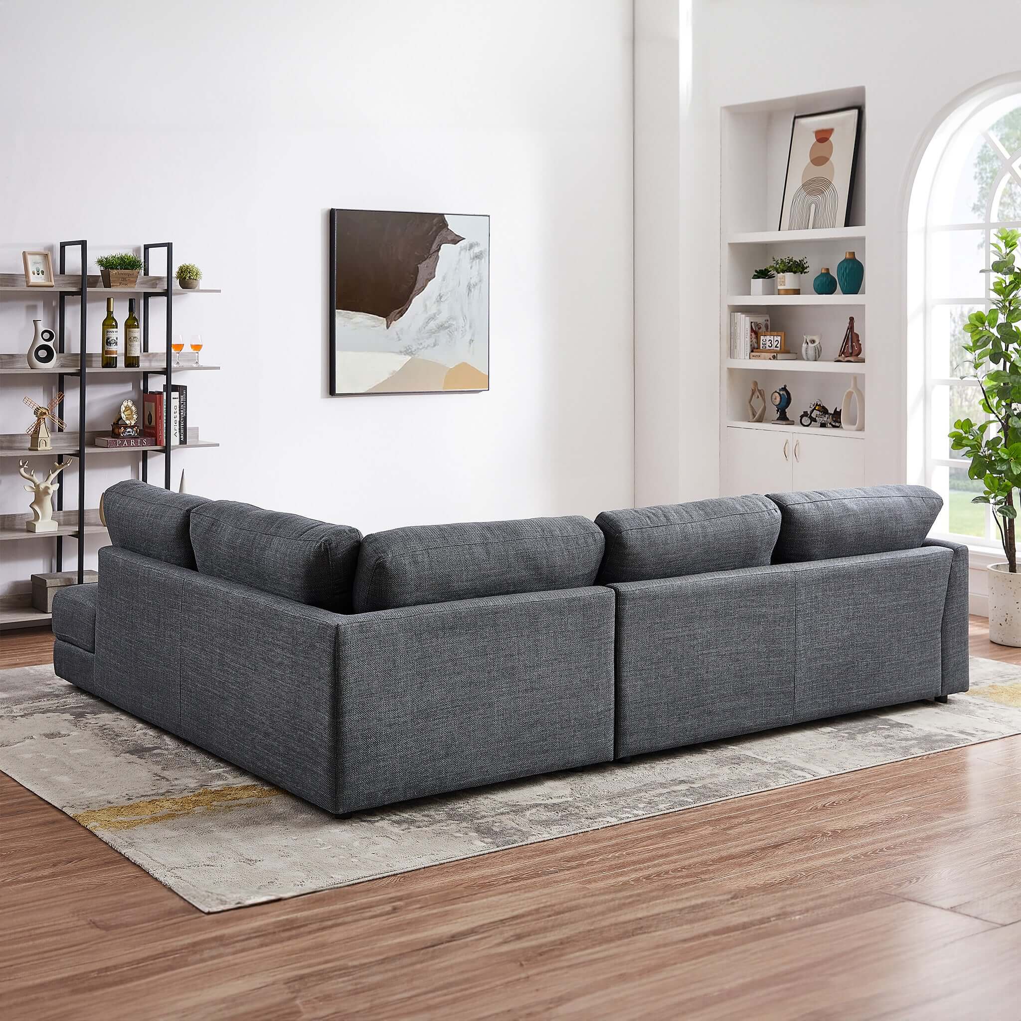 The pillow back linen sectional offers a perfect blend of comfort and style, making it an inviting centerpiece for any living space. Crafted with quality upholstery, this sectional boasts a soft and luxurious texture that exudes an understated elegance. The distinguishing feature of the pillow back design is its plush and generously filled backrest cushions, providing exceptional support and a relaxed seating experience. Whether you're lounging with a book, enjoying movie nights, or hosting gatherings, this sectional's deep seating and ample room allow for versatile and cozy arrangements.