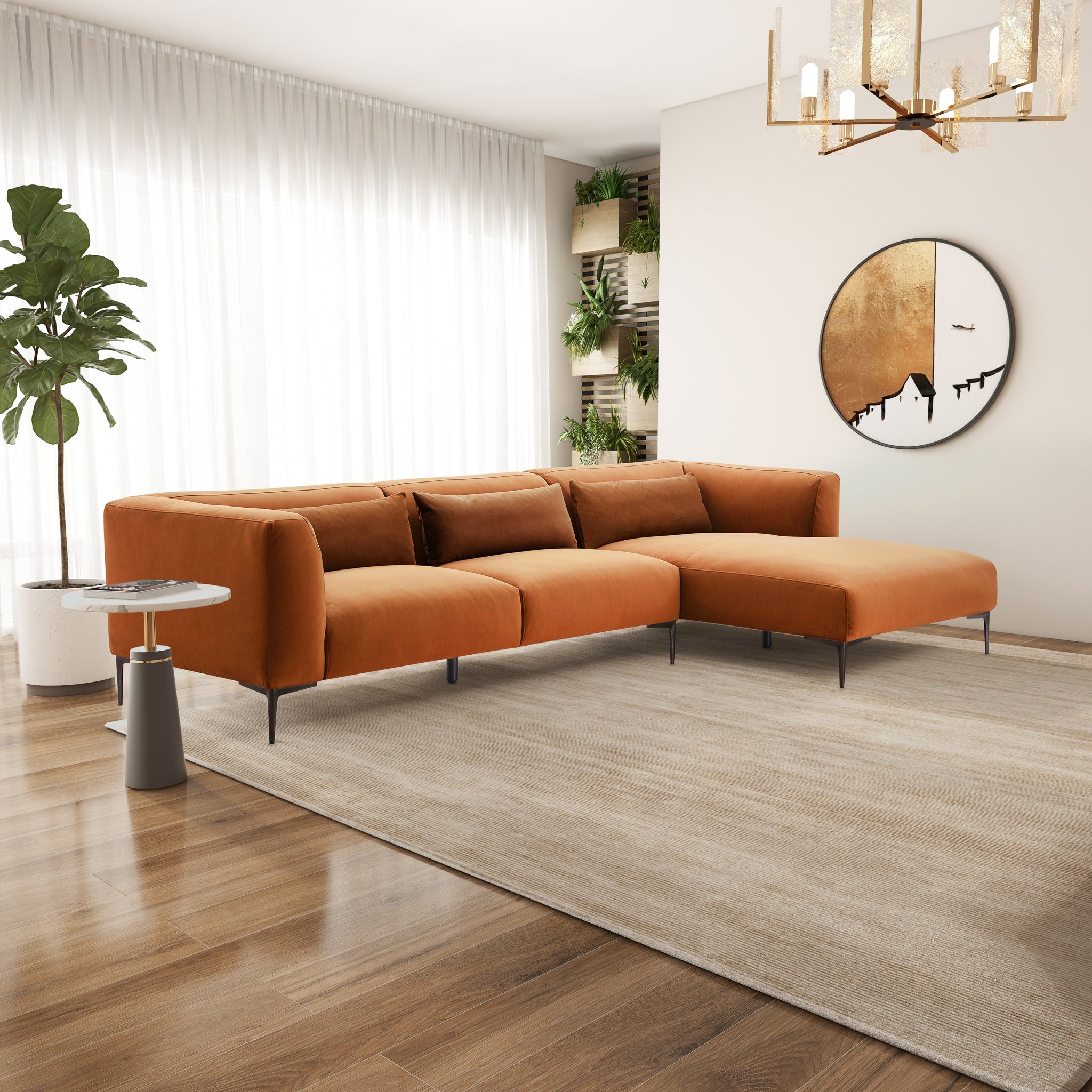Laley Right-Facing L-Shaped Velvet Sectional in Burnt Orange