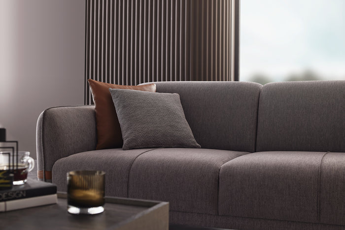 - Sleek gray upholstery with plush cushioning
