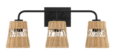 Moonlit Three Lights Wall Sconce With Rattan Shade, Bathroom Lighting Fixtures Over Mirror