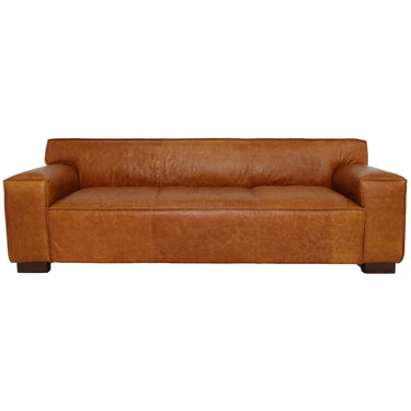 This leather sofa from the mid-century modern era is the ideal combination of comfort and style. A magnificent and one-of-a-kind statement, each piece is expertly created from real leather with a sumptuous wax and oil finish that highlights the rich, natural differences in the hide. In addition to providing unmatched comfort for sitting and relaxing, the deep seat's zigzag springs guarantee long-lasting support. The sofa's gorgeous rectangular wooden legs with a rich walnut finish give any room a touch of classic appeal.