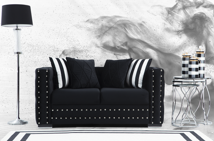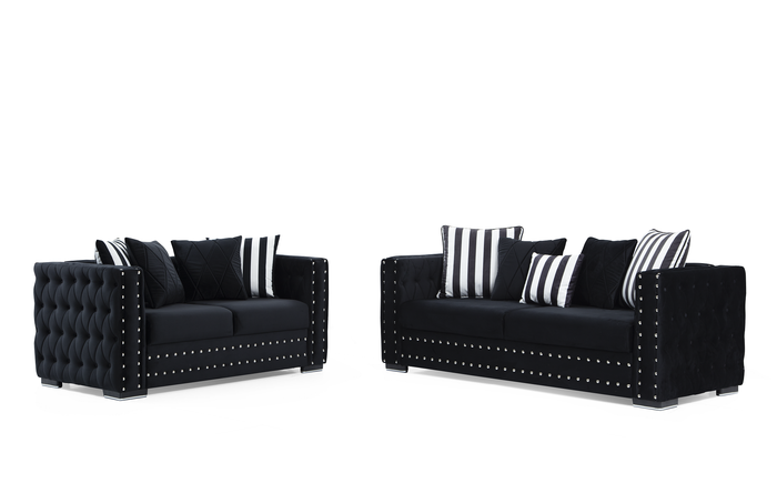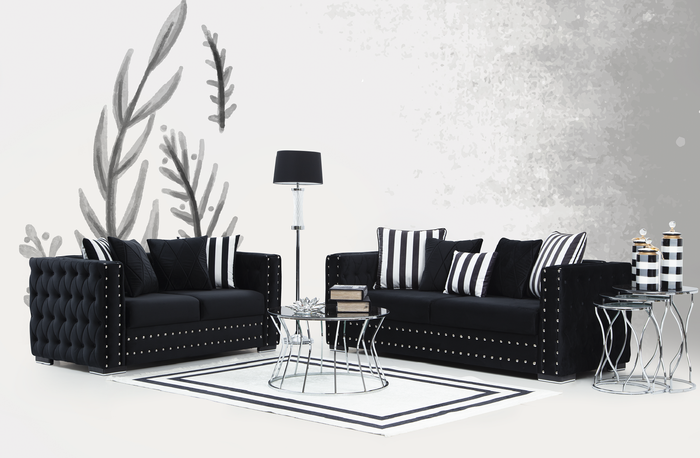 Mosby 2 Piece Modern Living Room Set Velvet Black