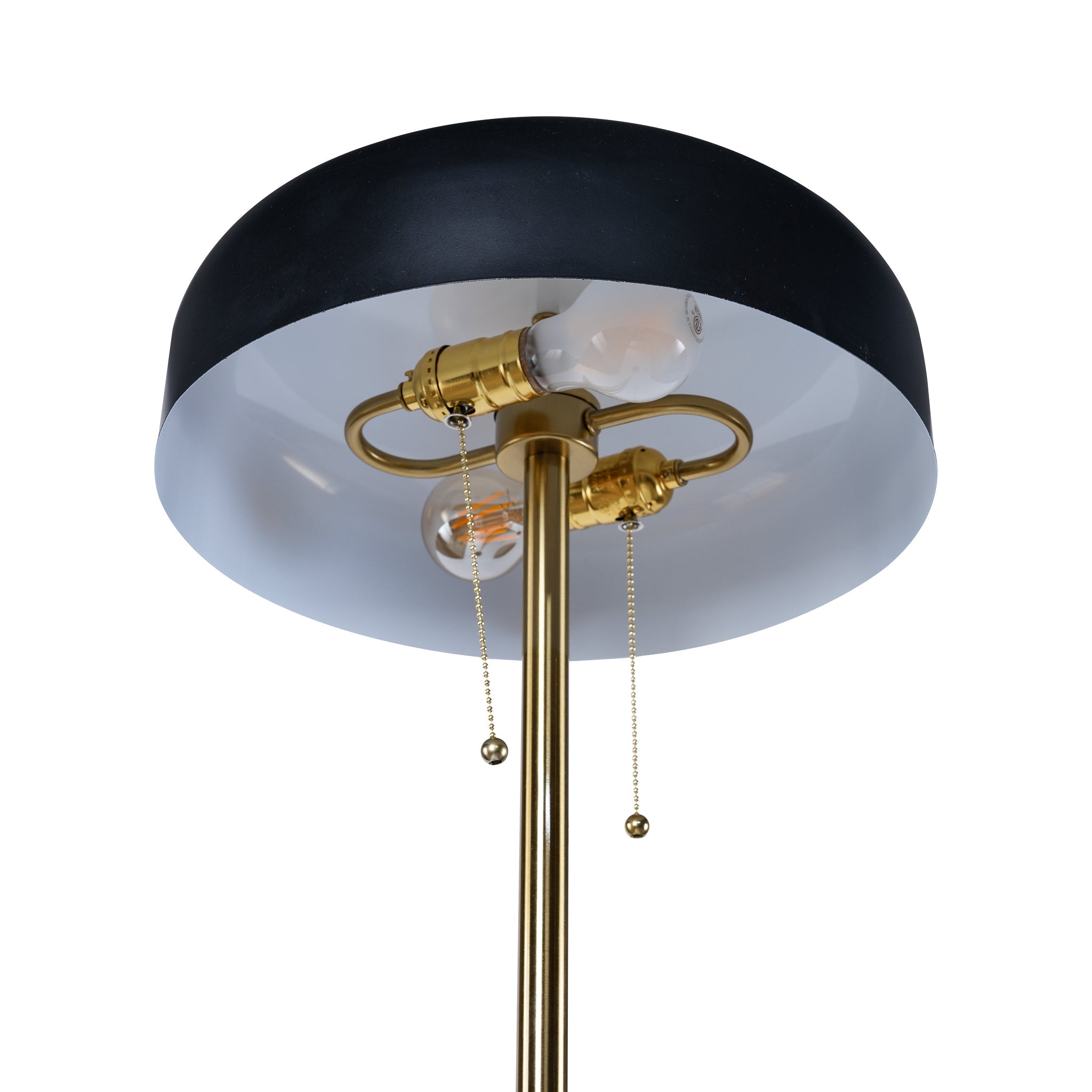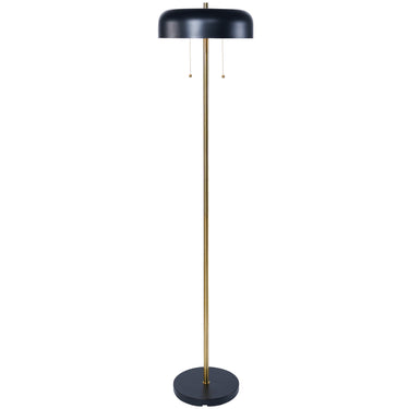 Enhance your space with this sleek floor lamp featuring a bold black outer shade and a pristine white inner lining for a modern, sophisticated look. Designed with a sturdy metal base, this lamp offers durability and style. The convenient pull chain switch ensures effortless use, making it an excellent lighting solution for living rooms, bedrooms, or offices.