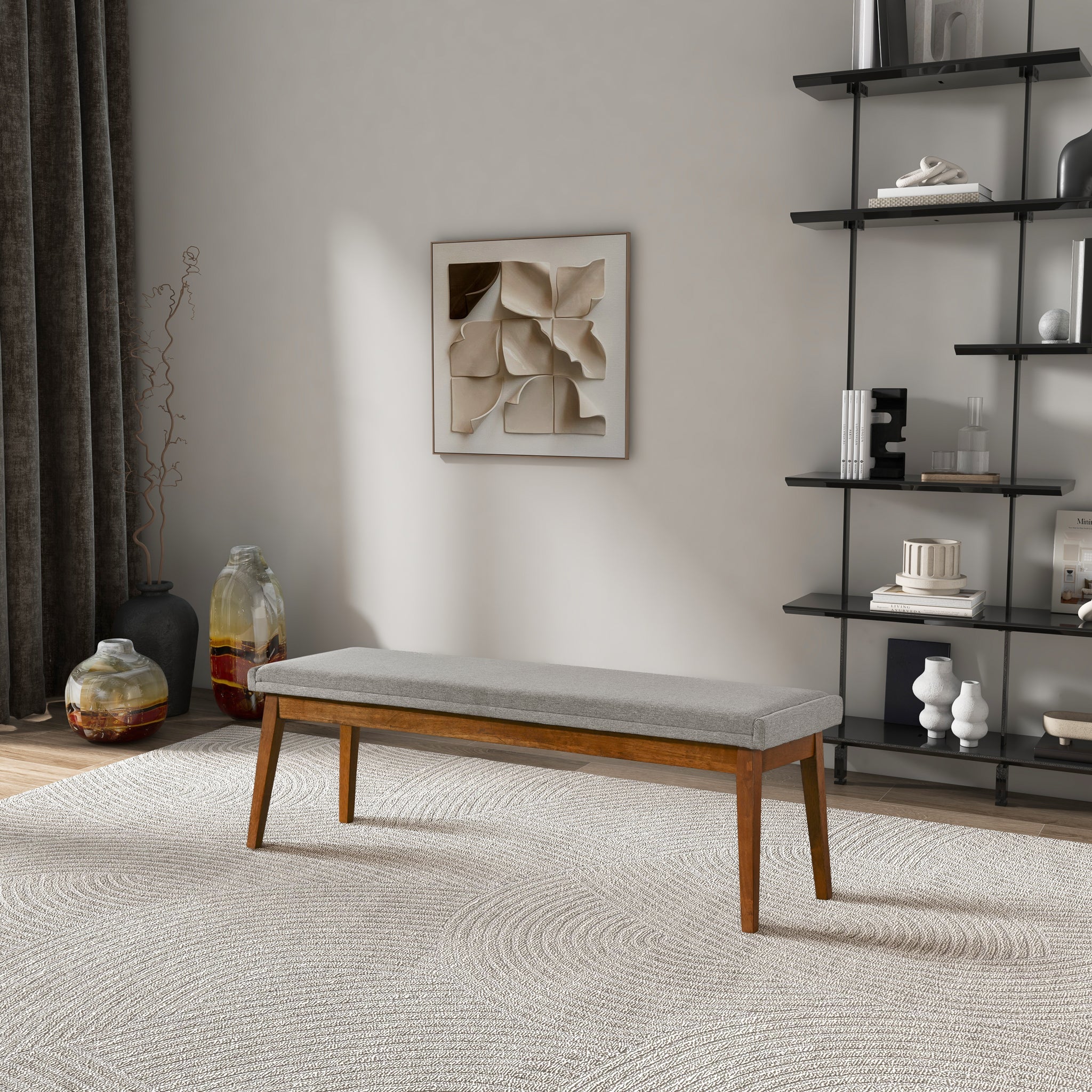 Warren Bench in Ash Grey Fabric