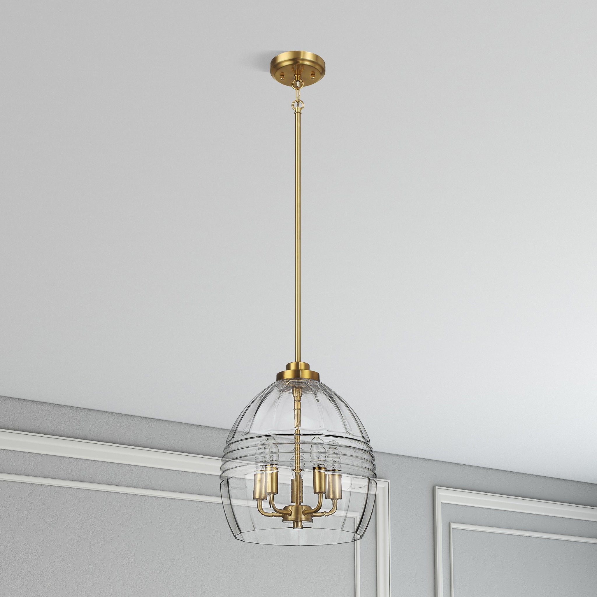 Zen Five Pendant Chain Hanging Light with Clear Glass - Satin Brass
