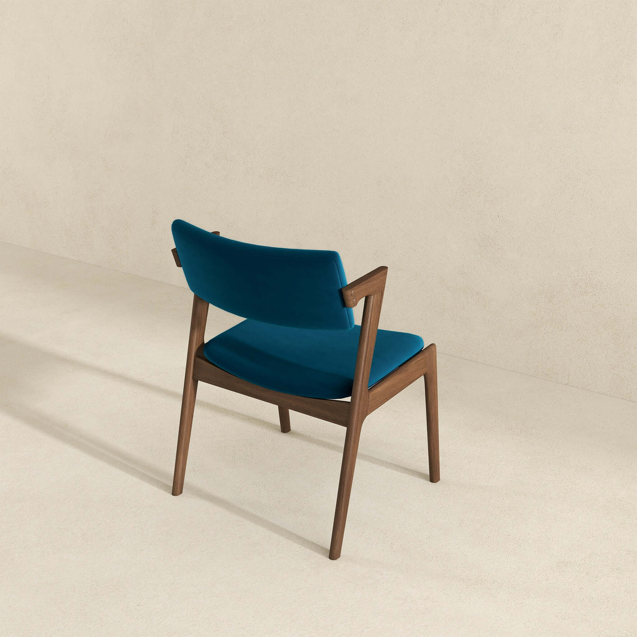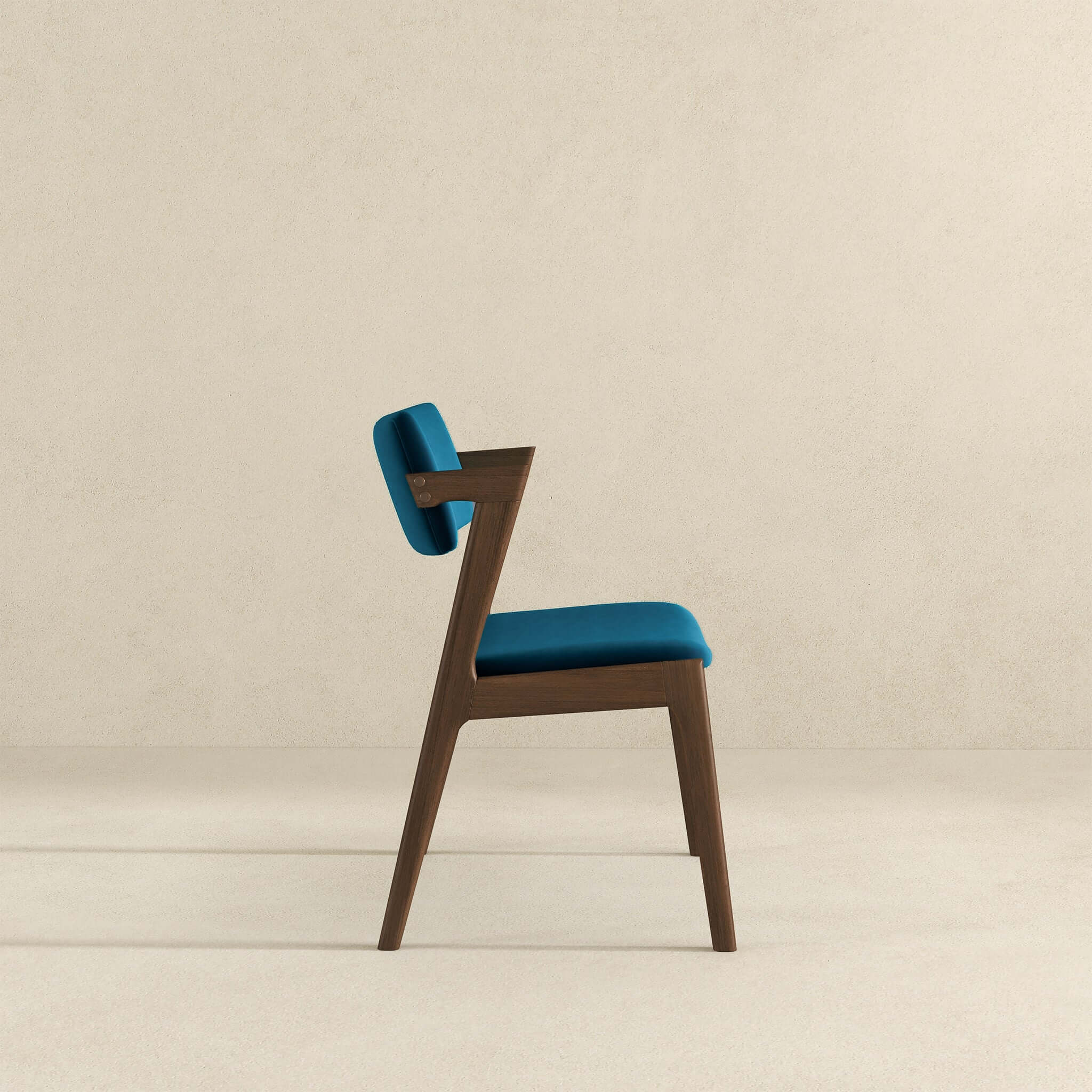 This set of 2 dining chairs is a contemporary take on Danish modern and American Mid-century modern style furniture. Crafted with solid wood and designed for comfort, this set is perfect for a variety of home environments. The durable upholstery and solid wood structure ensure that these chairs will stand the test of time, making them a practical and stylish addition to any dining area.