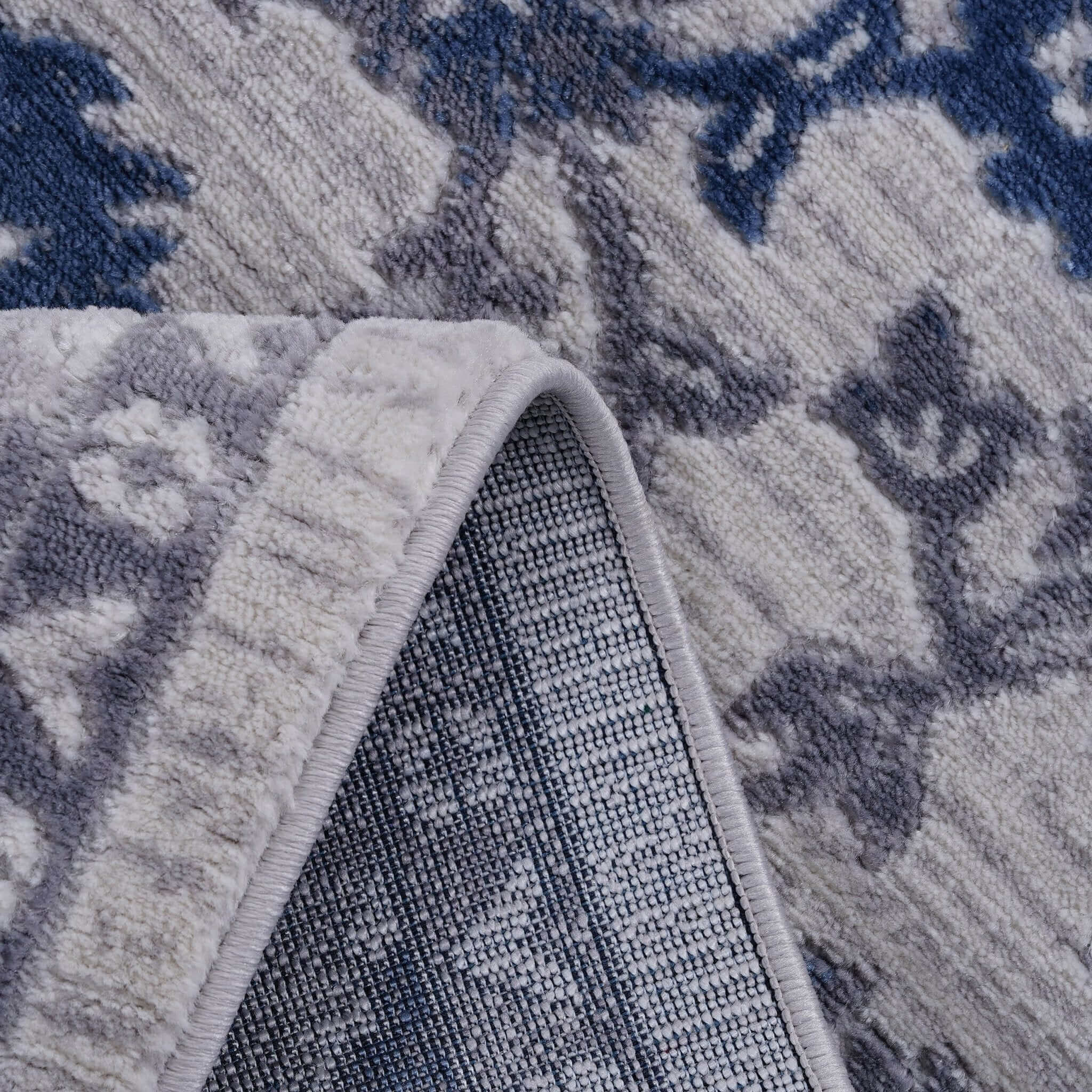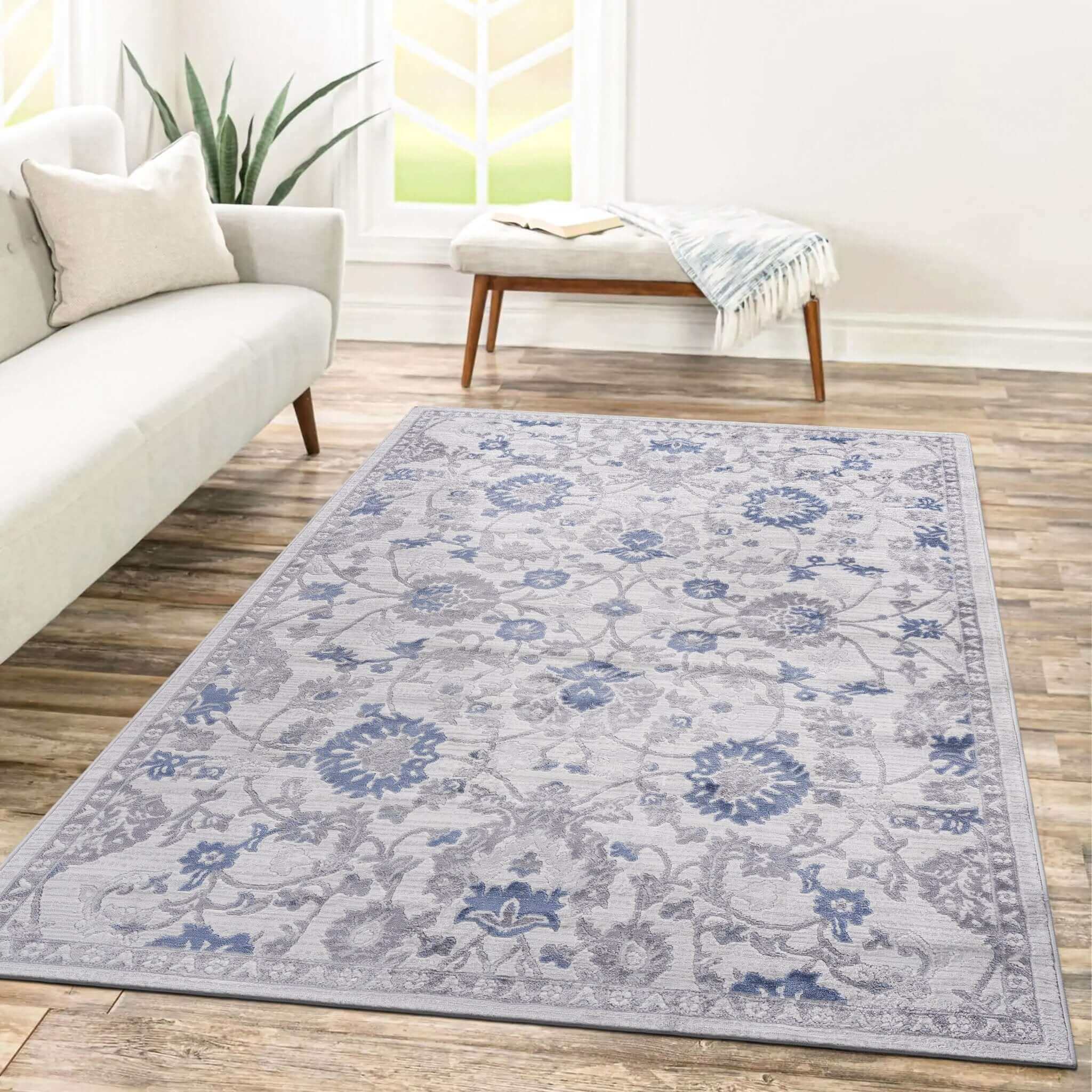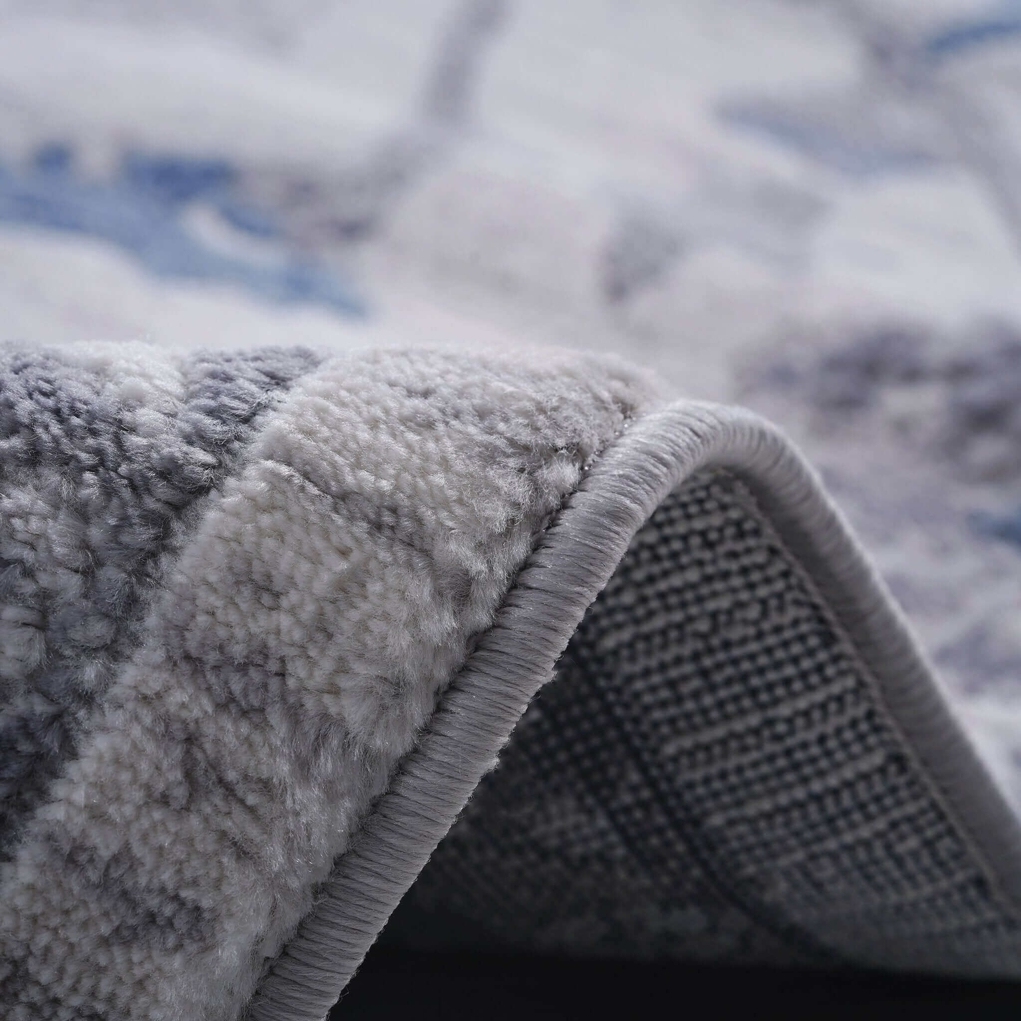Our Marfi Blue - Silver Rug, sized at 5'3'' x 7'6'', is a luxurious addition to any room. Made with a blend of polyester, polypropylene, and cotton, this rug offers durability and is stain-resistant. The machine-made and braided construction ensures high quality, while the blue-silver color adds a touch of elegance to any space. Whether you're looking for comfort, easy cleaning, or abstract patterns, our rugs are the perfect choice. Add a touch of luxury and style to your home with our premium area rugs.