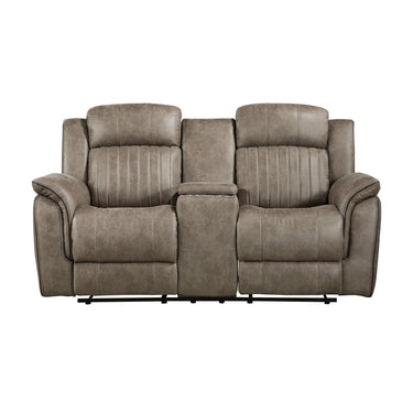 Centeroak Microfiber Double Reclining Love Seat with Center Console Brown