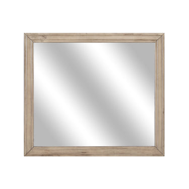 With a hint of weathering so popular in industrial styling, the Lonan Collection will fit into the rustic contemporary aesthetic that you look to achieve in your bedroom. Melamine laminate mimics the look of sun-bleached wood with natural undertones providing subtle depth to the design of the mirror's frame.