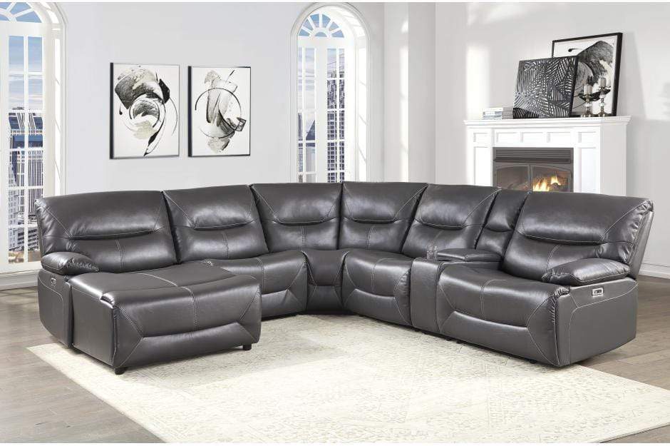 Introducing the Dyersburg Grey 6PC Sectional Power Recliner Set Gray from Homelegance at ASY Furniture - the perfect addition to any home. Made with high-quality materials and designed to enhance your space, this Sectional is the ultimate solution for the room its needed. Whether you're looking for a stylish and comfortable Sectional to relax in or a functional piece to complete your home office, this item has got you covered. Order yours today and experience the ultimate in comfort and style! h1duplicate, leather sectional, recliner, sectional, shipusfree