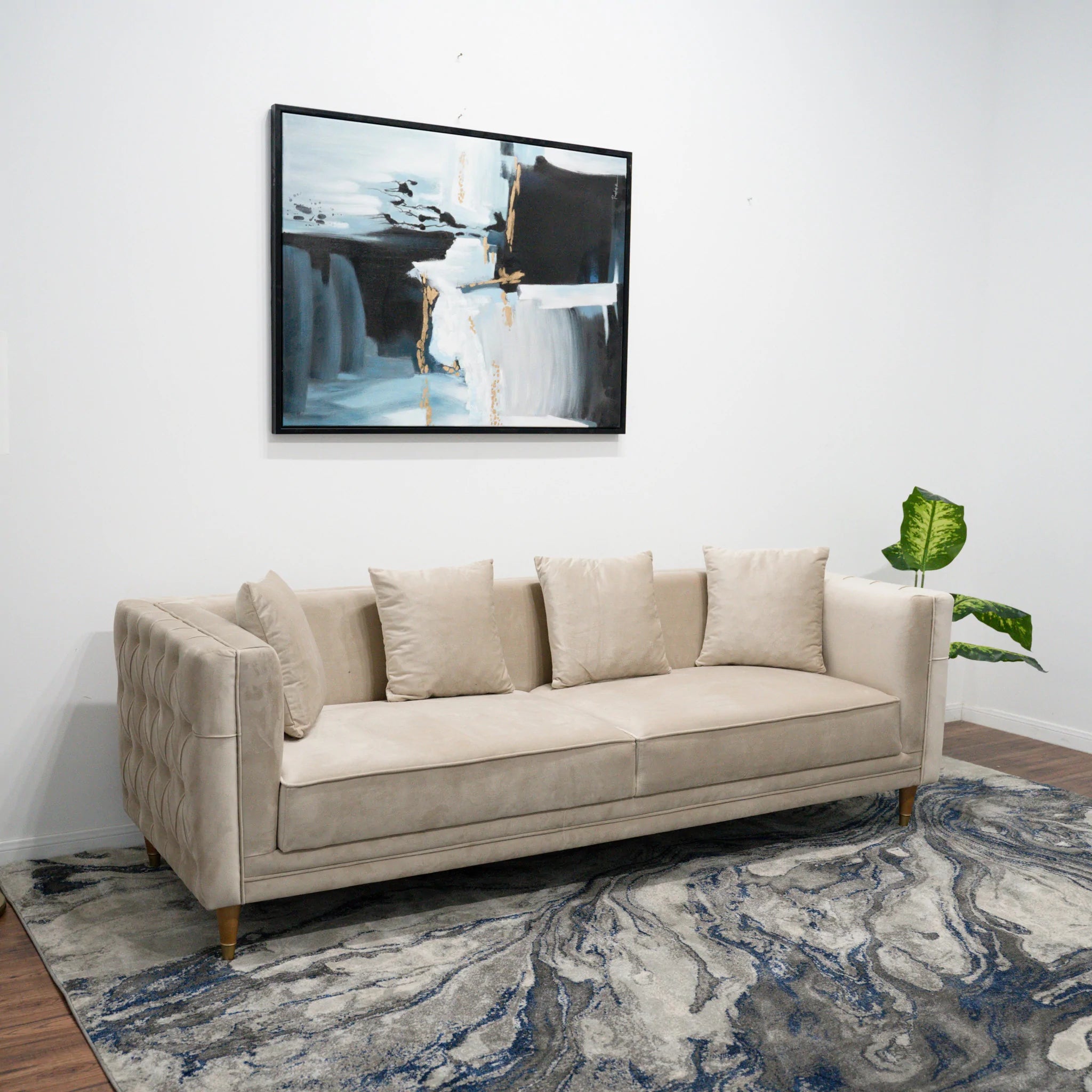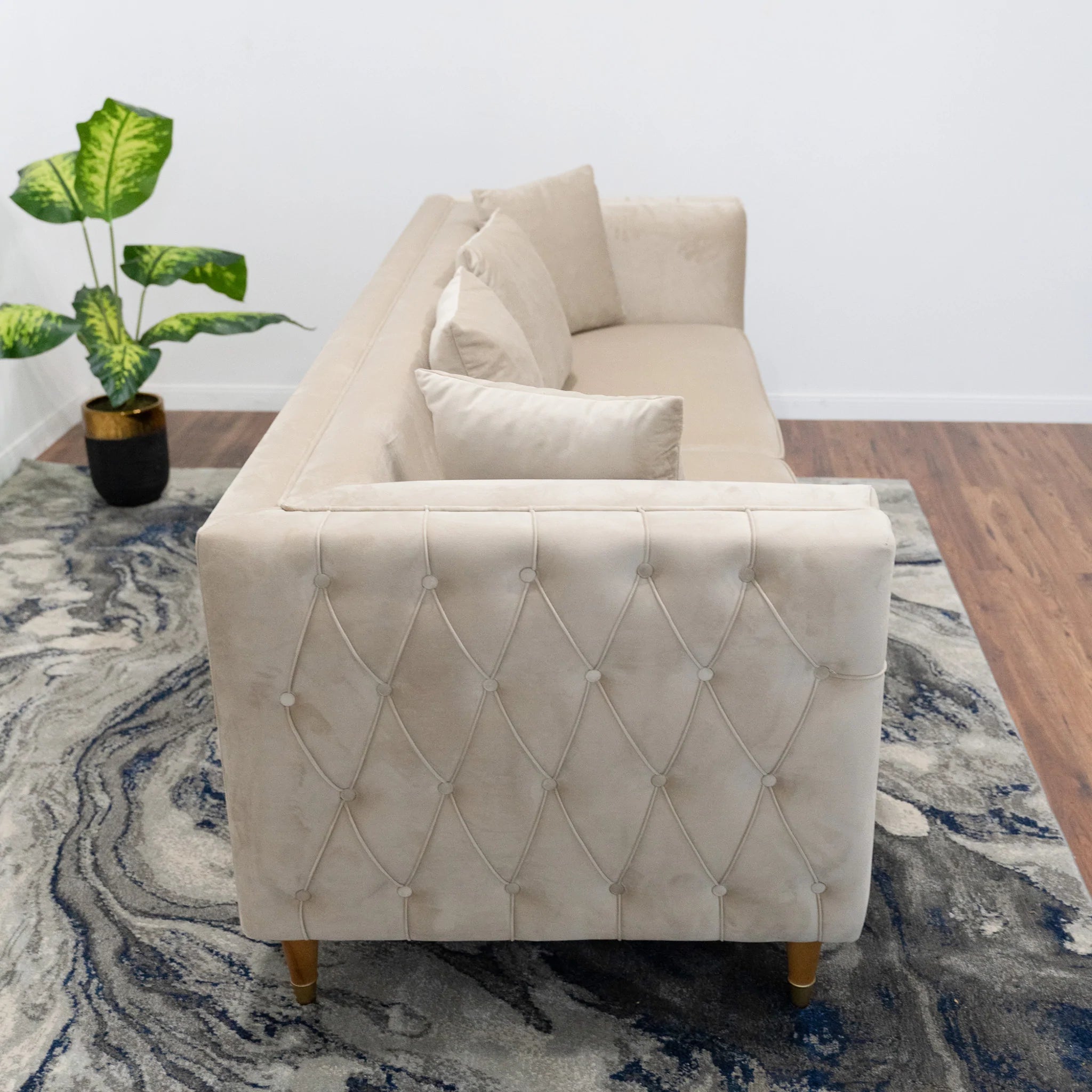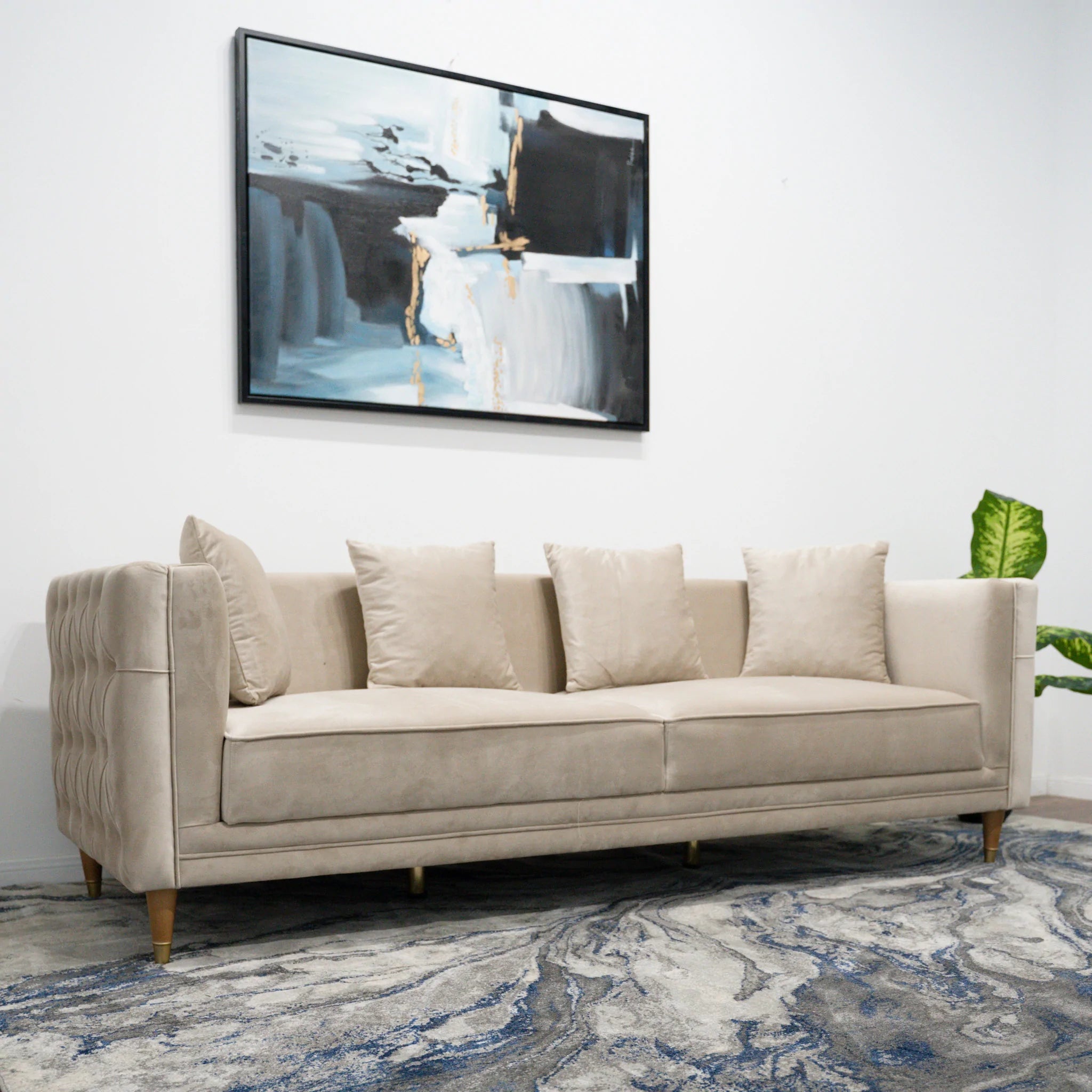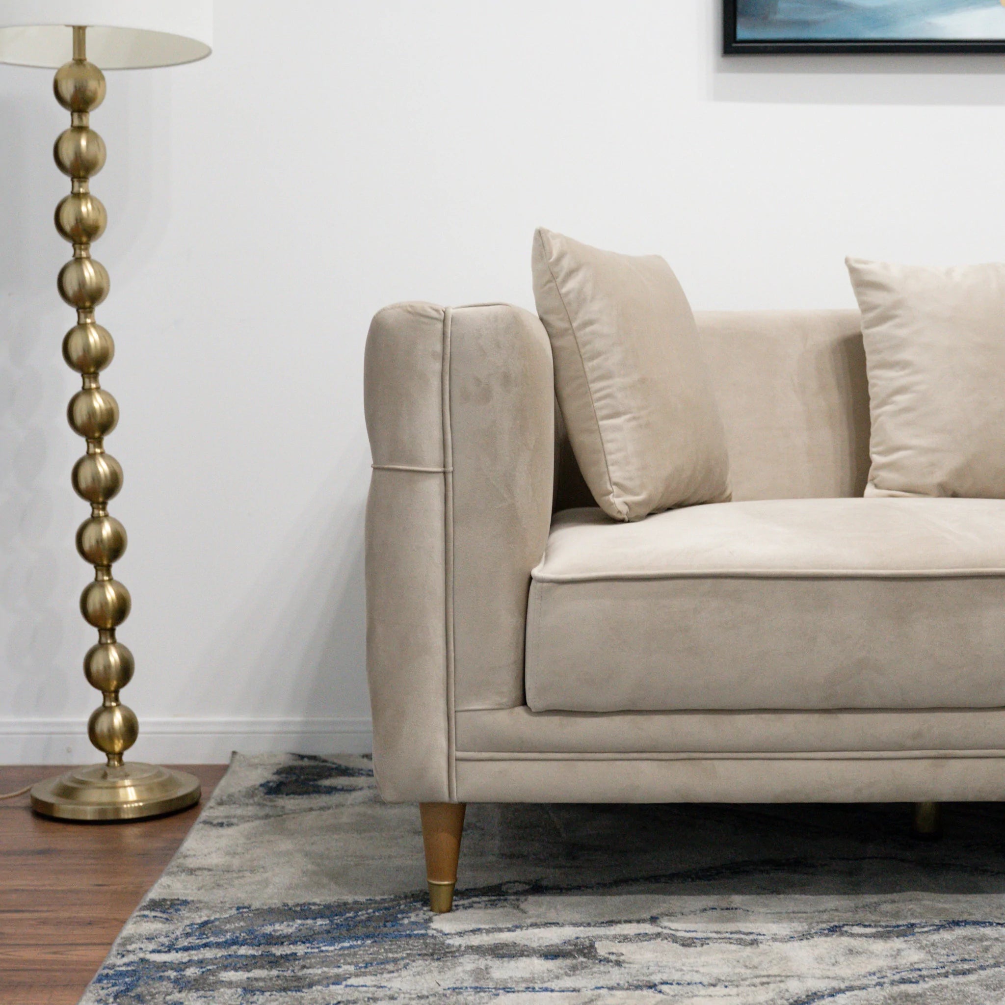 Experience mid-century modern style with the Edward Light Cream velvet sofa. Durable, high-density foam and easy to clean. Available in timeless colors.