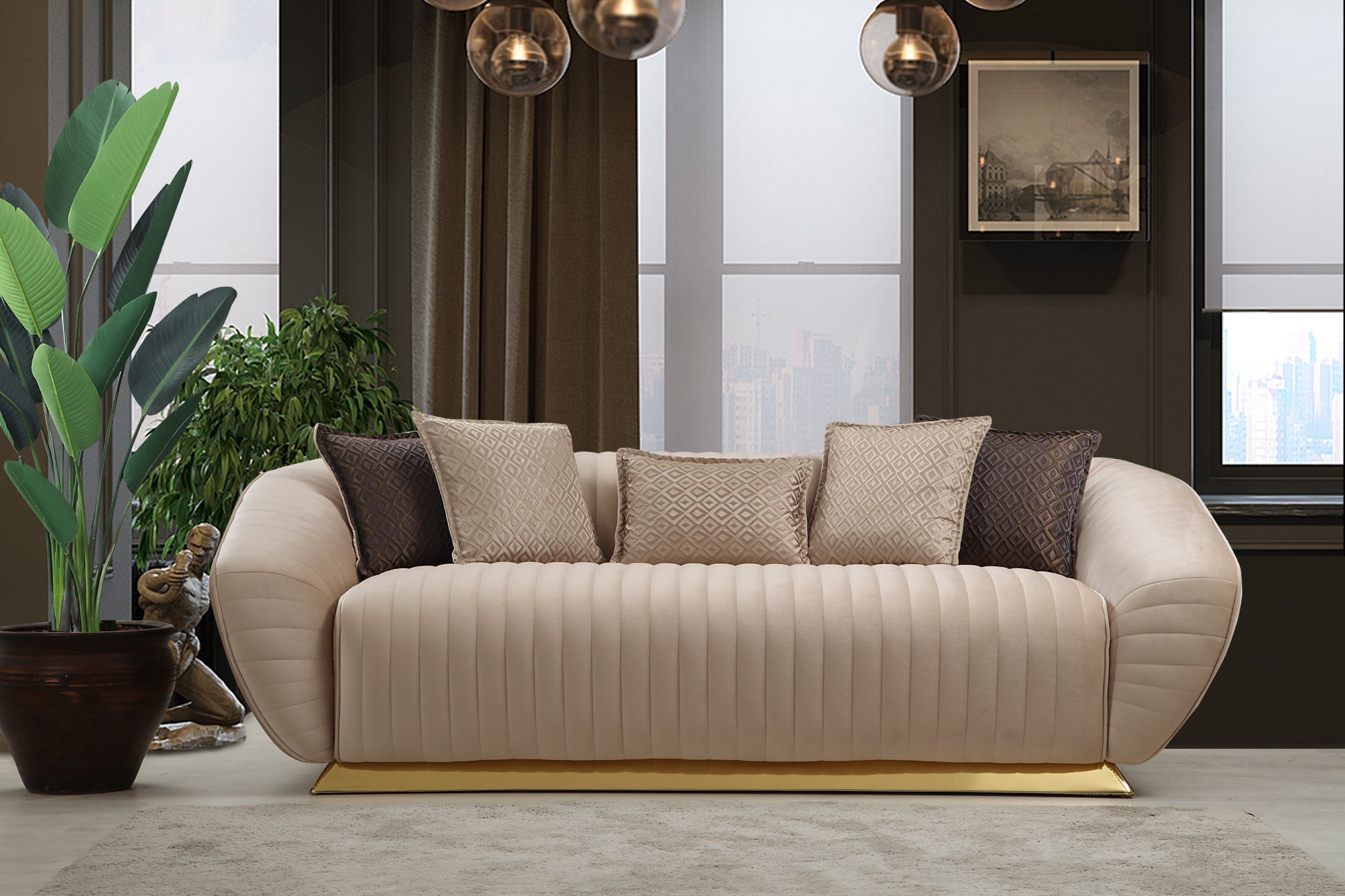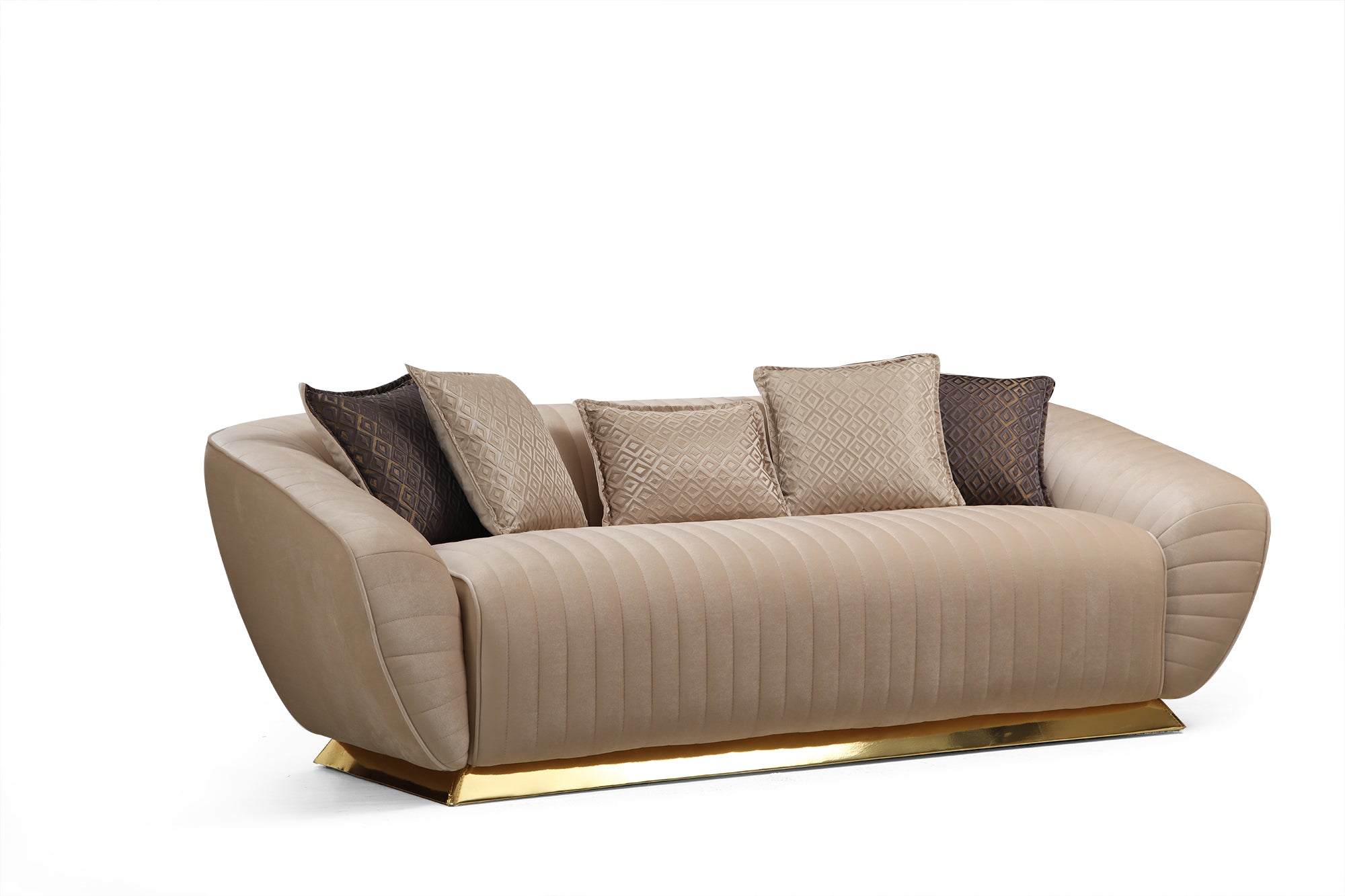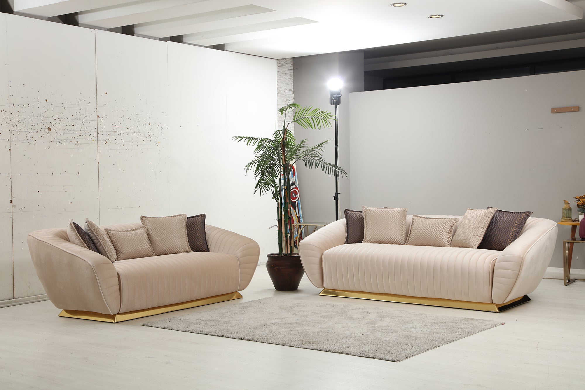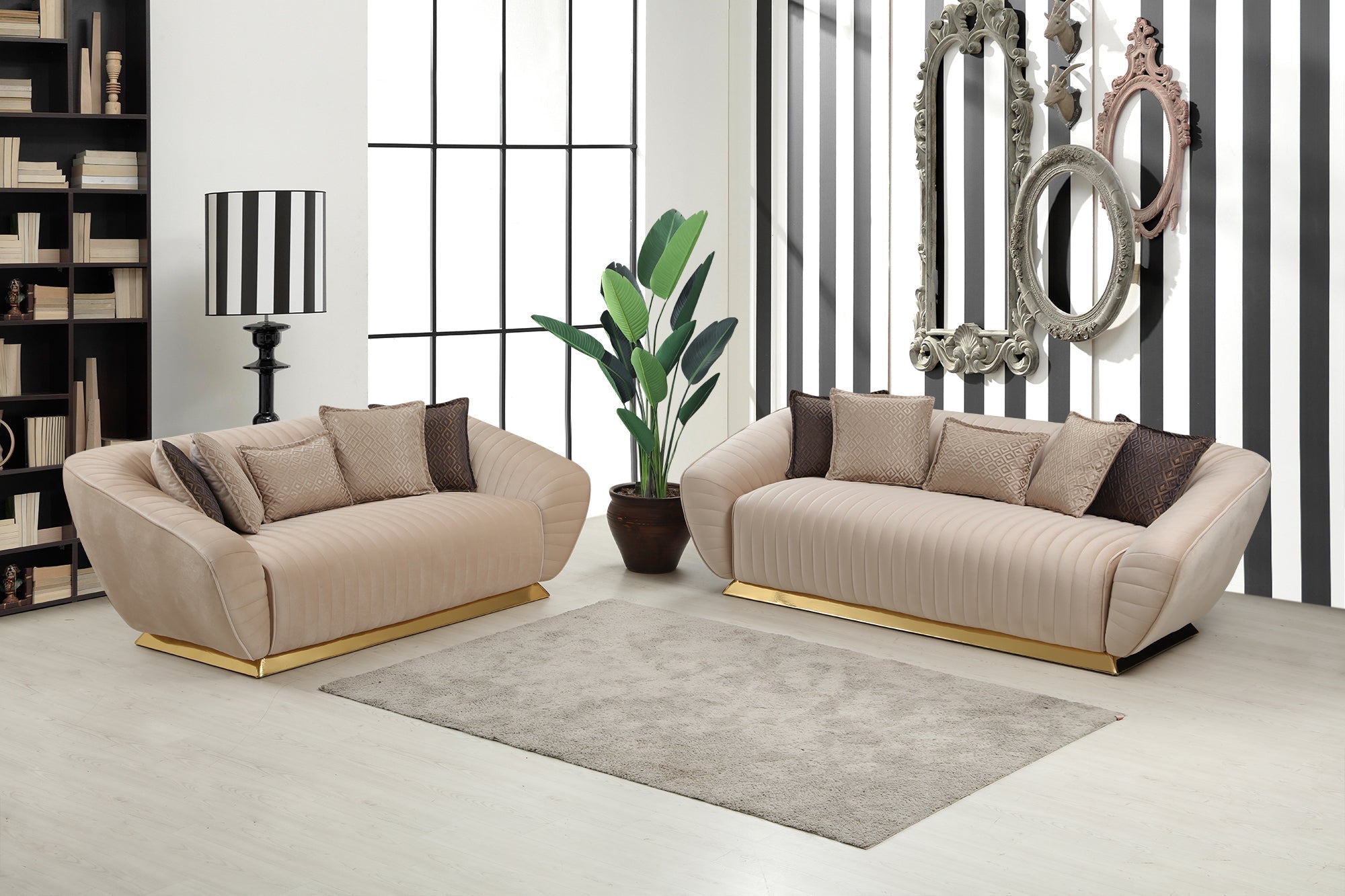 Empoli Modern Channel Tufted Living Room Set Sofa Loveseat Gold Leather Base Trim Deep & Supportive Seats Fully Assembled
