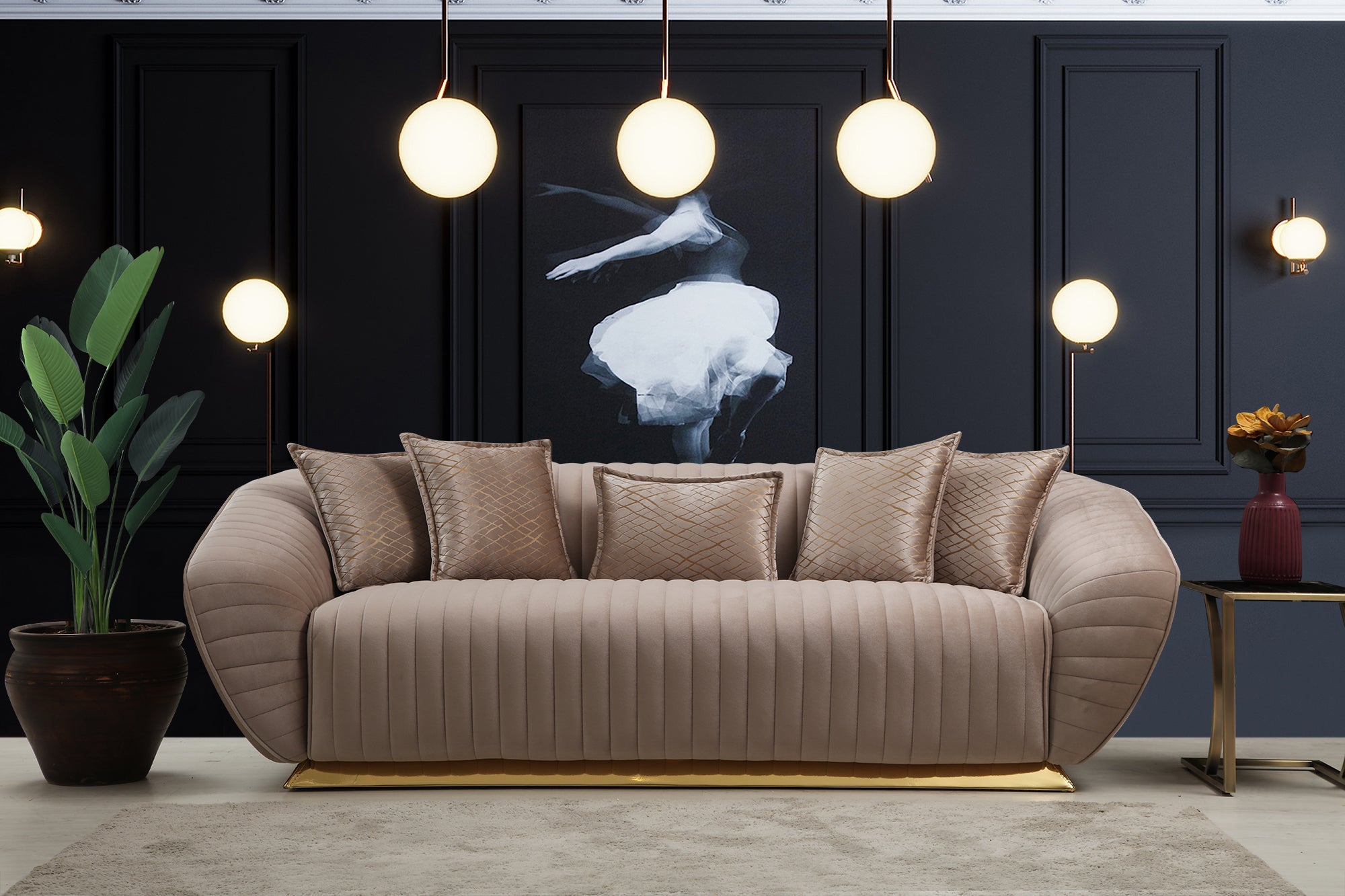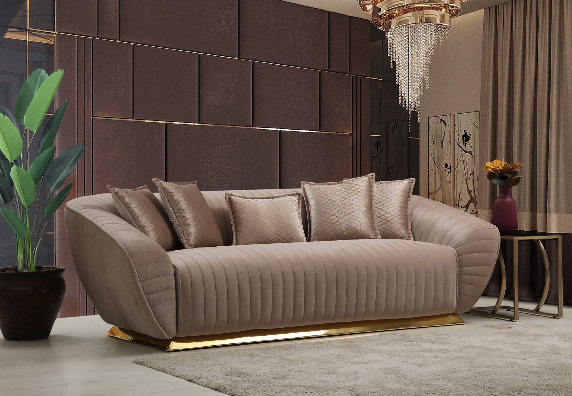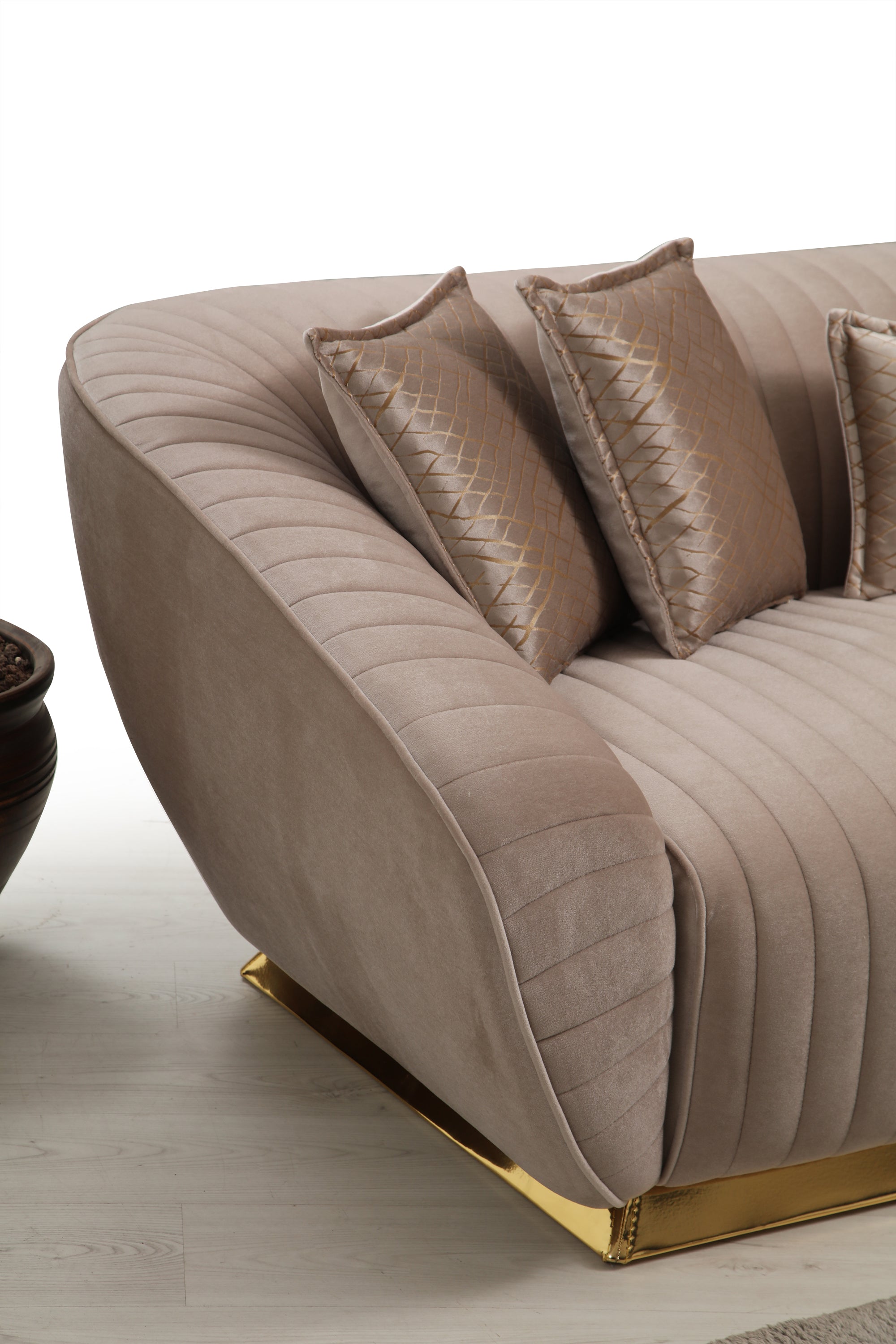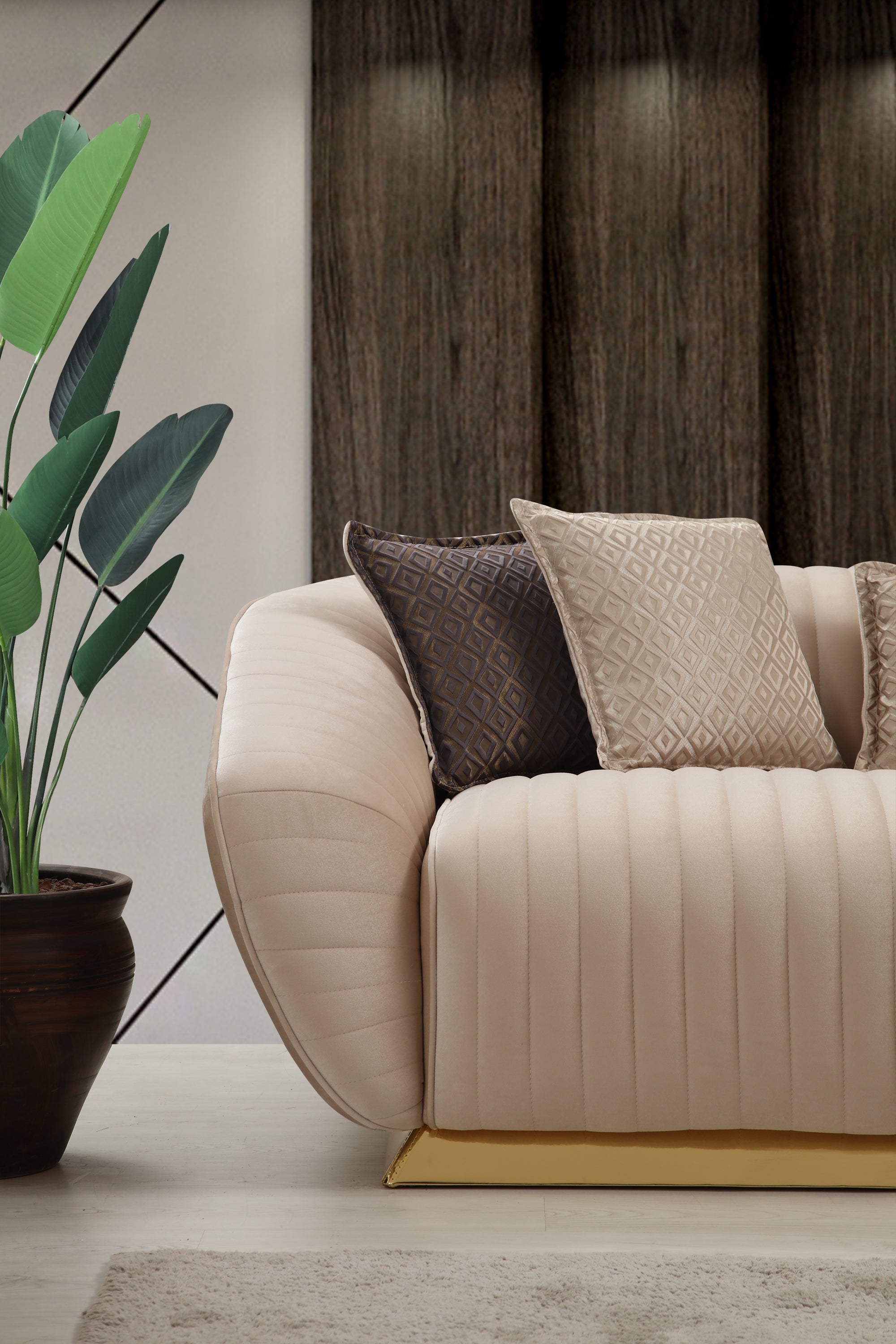 Empoli Modern Channel Tufted Living Room Set Sofa Loveseat Gold Leather Base Trim Deep & Supportive Seats Fully Assembled