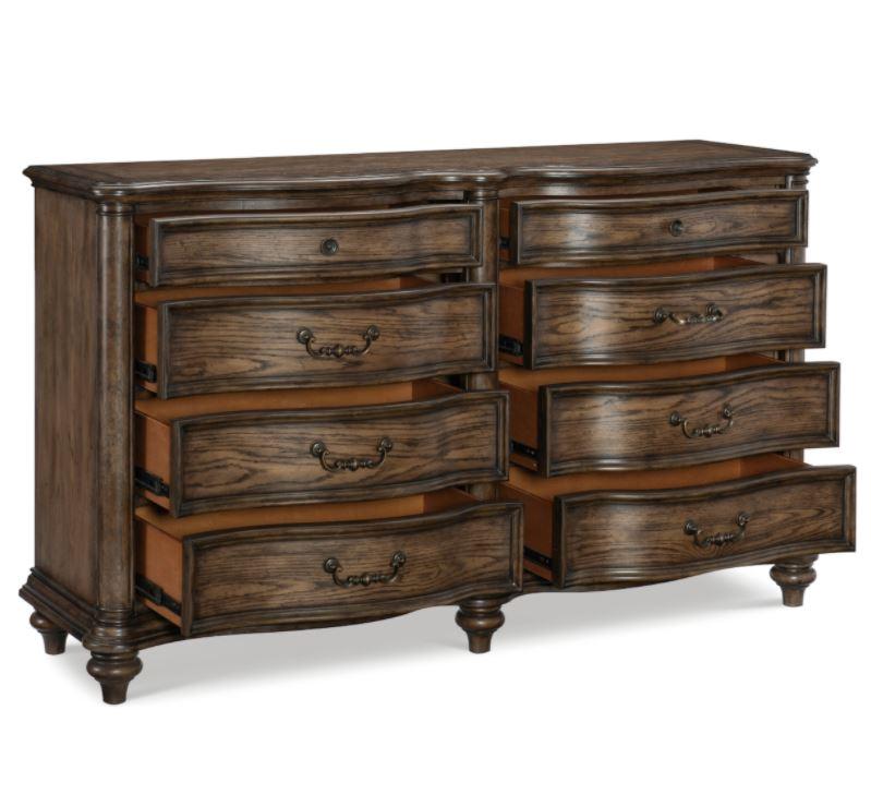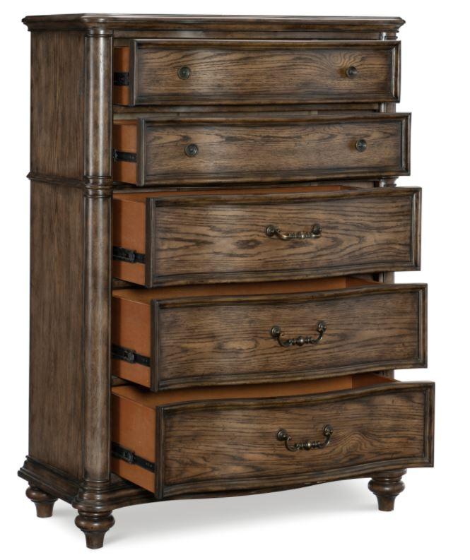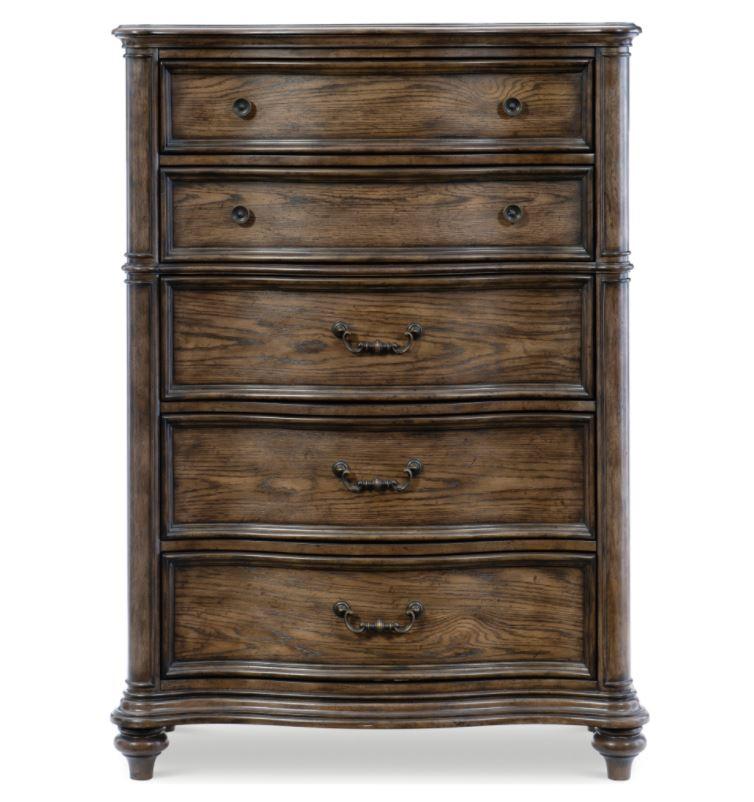 The elegant profile of the Heath Court Collection is comprised of classic elements that have been combined to create the perfect addition to your home’s traditional décor. The formal styling of the bedroom includes classic elements such routed edges and decorative wood grain. The neutral hued brown button tufted fabric of the headboard sets the tone for the refined presentation of the wood framing of the bed. The white oak veneer that graces the collection is highlighted with a brown oak finish.